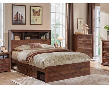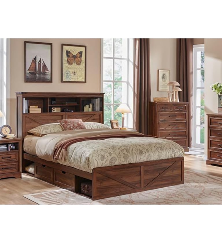 Designed for both style and organization, the bed frame includes four spacious drawers, giving you easy access to store books, glasses, electronics, or bedtime essentials while keeping your nightstand clutter free. The tall design creates a cozy, statement look that instantly elevates any farmhouse, rustic, or modern country bedroom.